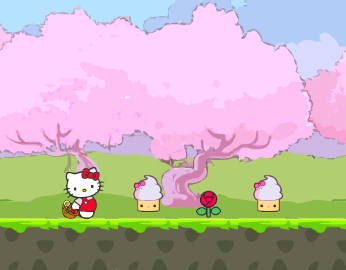 En este juego de plataformas dirigiremos a Hello Kitty en la recogida de pasteles por varios escenarios, en los que tendrá que saltar para lograr pasar los obstáculos y matar enemigos antes de que le toquen. La manera de eliminar un enemigo es saltando encima de él. Cuantos más pasteles consigamos, muchos más puntos tendremos en nuestro marcador.