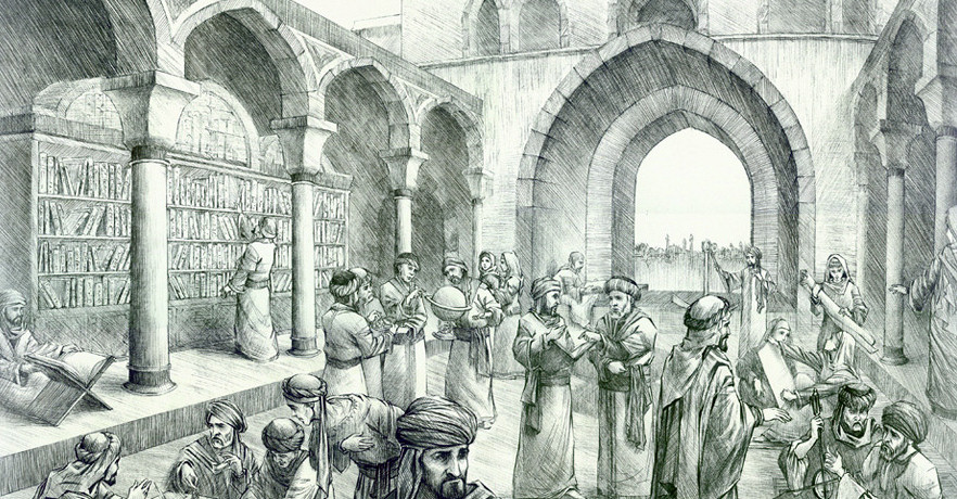 Todos los alumnos musulmanes estudiaban el Corán, el texto religioso básico del islam, aunque muchos de ellos estaban también interesados en los numerosos manuscritos que habían llegado allí tras el ataque a Roma en el año 455. En Bagdad se estableció una «casa de sabiduría», que animaba a los jóvenes ambiciosos a incorporarse al trabajo de traducción y estudio de estos viejos manuscritos.