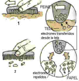 Si pasamos un peine a un trocito de papel, el trocito de papel se moverá y se pegará al peine. Según la primera ley de Newton, esto significa que, fuera lo que fuese lo que hicimos al peine frotándolo contra algo, lo capacitó para ejercer una fuerza. Llamamos a esta fuerza “electricidad” y definimos la carga eléctrica como lo que es capaz de producir la fuerza eléctrica.