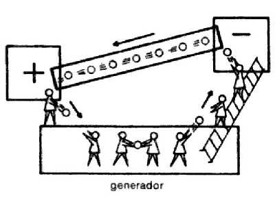 Por ejemplo, cuando encendemos una luz, la fuente de la electricidad es la compañía eléctrica, el circuito ininterrumpido es el hilo de cobre que conduce hasta la lámpara, y la carga es la bombilla.