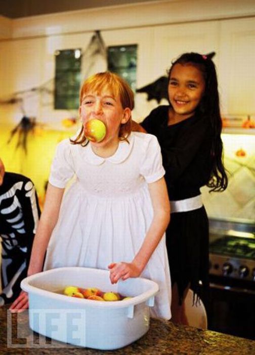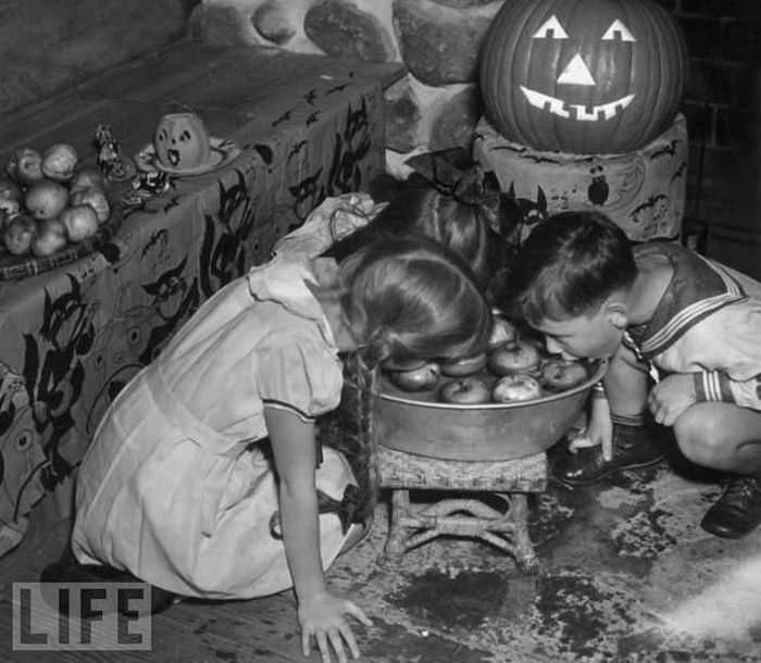 Apple Bobbing (juego de recoger manzanas típico de Halloween) en 1922.