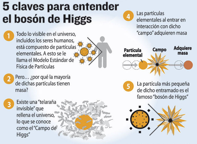 Este es un hecho que a veces no se reconoce adecuadamente. Como veremos enseguida, el bosón de Higgs está íntimamente relacionado con el mecanismo que proporciona masa intrínseca a los electrones y a los quarks, por lo que a veces se dice que el bosón de Higgs es el responsable de la masa de la materia. Pero esta afirmación, así sin más, es incorrecta.