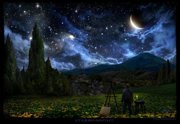Esta caracterización realística del cuadro «La noche estrellada» de Vincent van Gogh está realizada por Alex Ruíz.