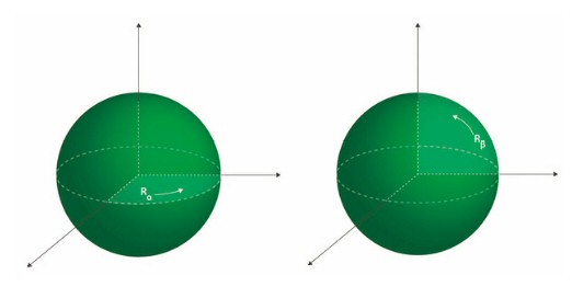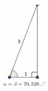 Así, para las rotaciones en tridimensionales, ¡el orden de los factores sí altera el producto! La rotación de ángulo α en un plano horizontal y de ángulo β en un plano vertical representadas más arriba no verifican ninguna relación algebraica si α y β son bien escogidos (y «poco convencionales»). Esto se cumple, por ejemplo, si α = β coinciden con el ángulo descrito en la figura de abajo, el cual —medido en grados— es irracional.