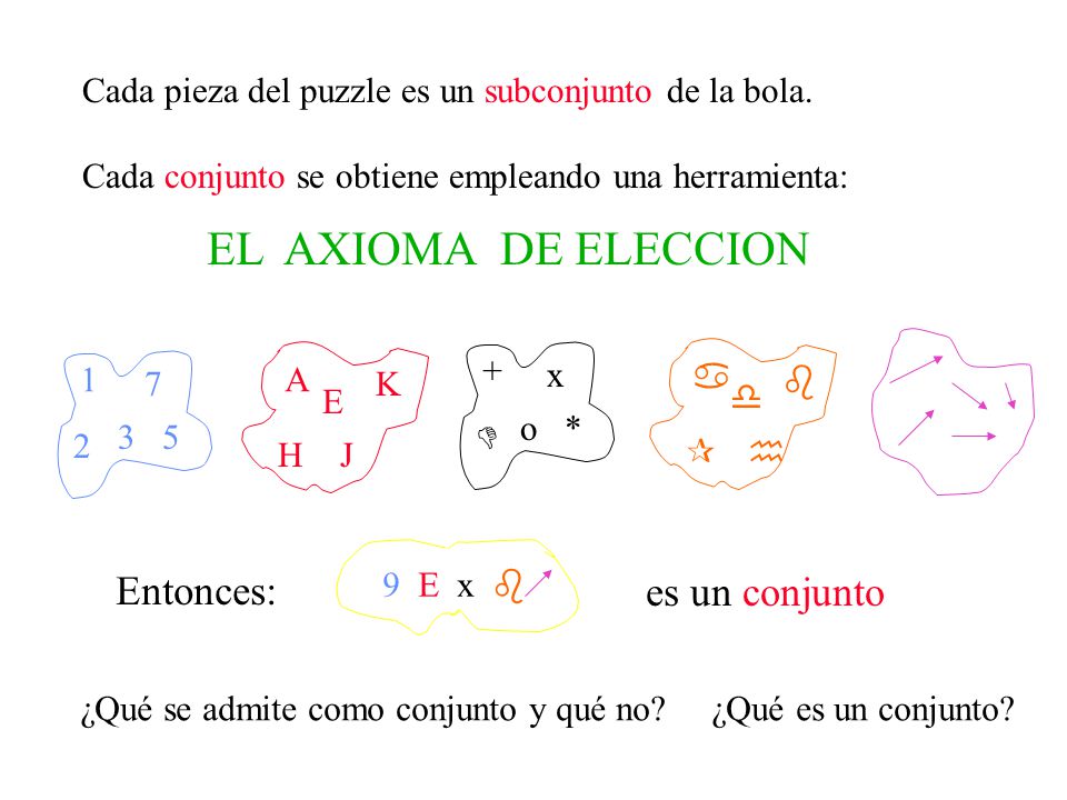 Esta piedra angular, a la que denominamos «axioma de elección», corresponde a una cierta potestad huidobriana de «pequeños dioses» que nos autoconferimos y que dice simplemente que, si tenemos familias de conjuntos, entonces podemos escoger un miembro de cada una de ellas.