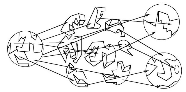 Iniciemos este recorrido escarpado meditando sobre la siguiente disyuntiva borgesiana: supongamos que para formar palabras se pueden usar todas las combinaciones de las veintisiete letras del abecedario (y que, en particular, no haya problema alguno con las palabras sin vocales). Más aún, imaginemos que tenemos una copia del diccionario de todas las palabras posibles en nuestras manos. Ciertamente, sería lógico dividir este inmenso diccionario en veintisiete tomos, cada uno de los cuales corresponda a la primera letra de las palabras que figuran en él.