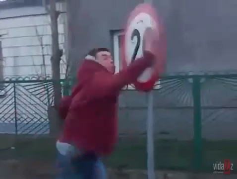 Este desde luego tuvo su merecido, que no quede impune el ataque contra una señal de tráfico…