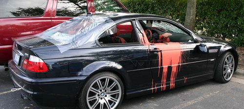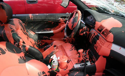 Madre mia como le ha dejado el coche. Pues si que ha sido vengativa la novia…