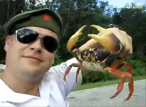 En el vídeo vemos cómo un cangrejo se venga del hombre que lo sostiene en una posición «indefensa». Eso tiene que doler, jeje. Me estaba imaginando que el cangrejo podría doblar el dolor si hubiese enganchado también el labio.