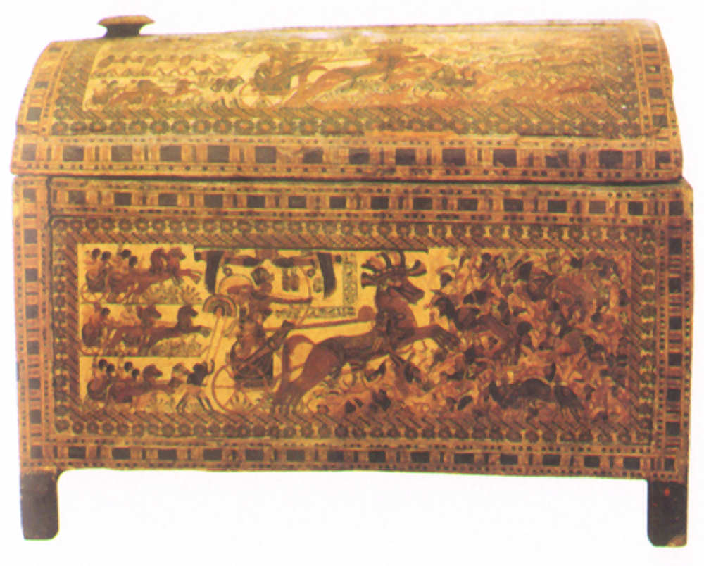 Cofre con escena de guerra perteneciente al rico ajuar funerario de Tutankamón.