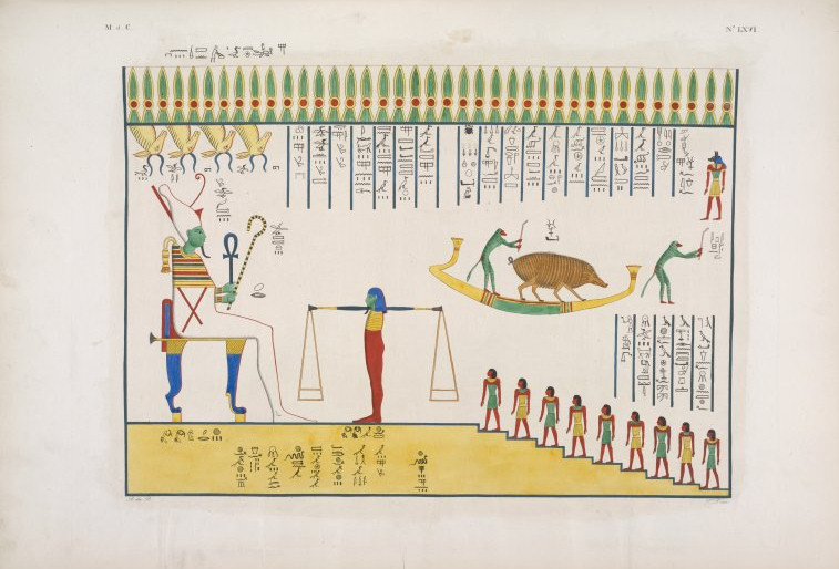 El juicio de Osiris representado sobre papiro en el capítulo 125 del Libro de los Muertos.
