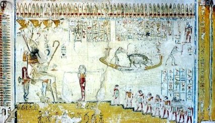 Escena de una sicostasia encontrada en la tumba de Ramsés VI.