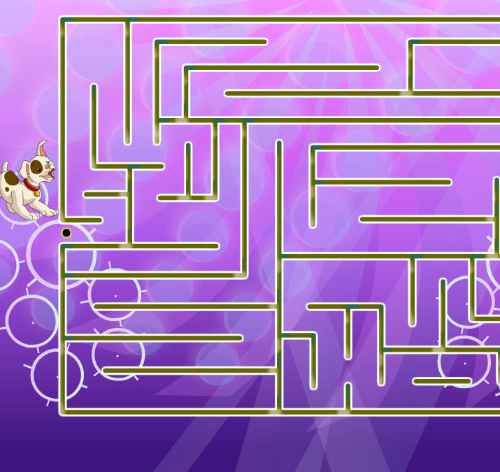 Este perrito ha perdido su pelota y tiene que cruzar un laberinto para llegar a ella, pero tiene miedo de perderse. Así que debes ayudarle a cruzarlo guiando el punto a través de los pasillos del laberinto hasta llegar a la salida con la pelota. Puedes arrastrar el punto empleando el ratón. Para volver a jugar cuando termines, dale a la opción PLAY AGAIN.