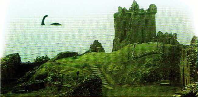 ¿Un fotomontaje?: Bajo estas líneas, las ruinas del castillo de Urquhart, que dominan el lago Ness, y detrás, gigantesco, el monstruo. ¿Realmente esconden estas tranquilas aguas una criatura misteriosa que ha sobrevivido durante siglos?