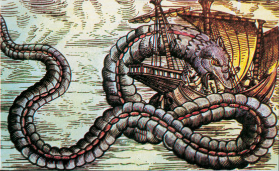 En la Biblia se habla del Leviatán, criatura mitad serpiente mitad dragón, presente también en la mayor parte de las filosofías orientales en Europa. Los primeros relatos fueron de navegantes escandinavos, como Olaus Magnus, que, en 1555, habló de una criatura de 60 m de largo y 6 m de diámetro, un animal negro con una especie de melena y ojos brillantes. En el siglo XVIII se habló de una serpiente de mar gigantesca en las costas noruegas.