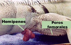 Las serpientes y lagartos (saurios), poseen un pene bi-lobulado denominado hemipene. Dicho órgano se encuentra resguardado en la cola, en un lugar llamado cloaca, y puede emerger por una abertura a voluntad, generalmente durante el coito. Algunas iguanas eyaculan en diversos lugares durante la época de celo en los intentos de cópula.