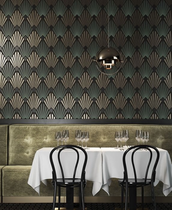Otra de las tendencias que viene pisando fuerte esta temporada es el estilo Art Decó. Si queremos conseguir un efecto de gran poder visual y que tenga ese toque retro/vintage, esta clase de papel pintado conseguirá darle un estilo sofisticado a nuestro hogar.