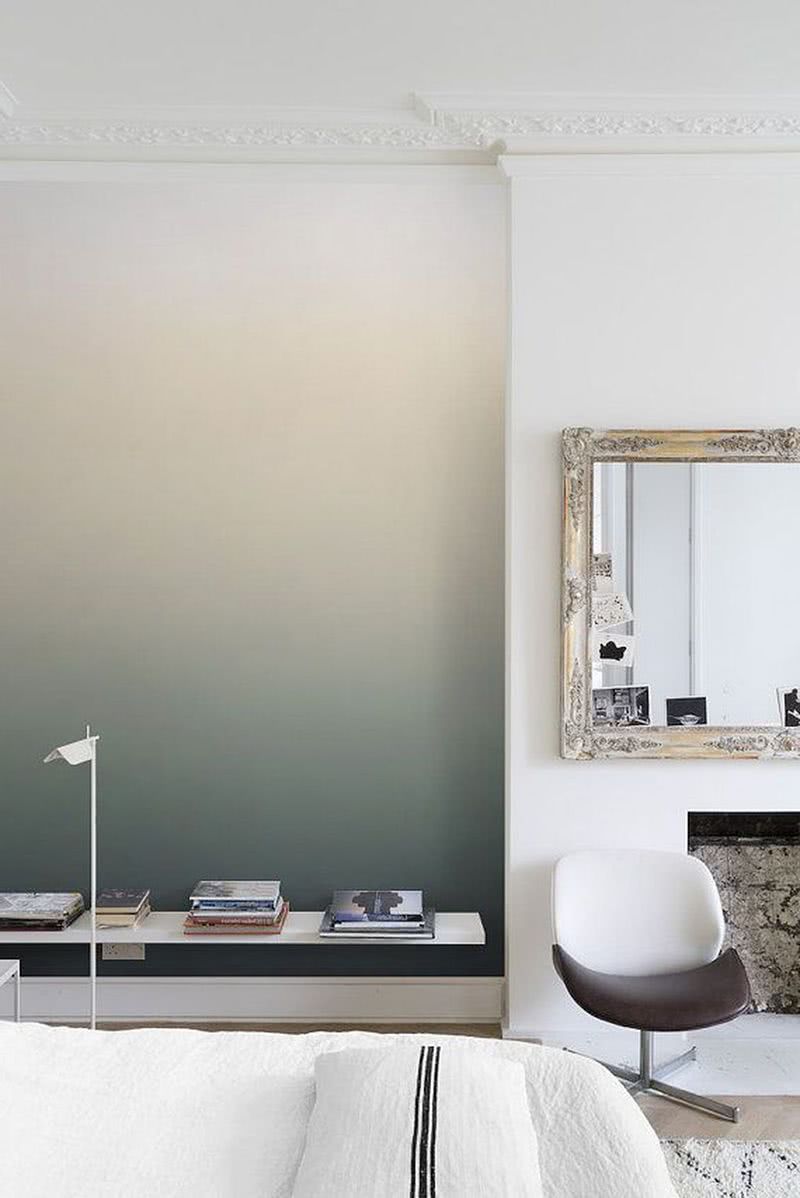 El efecto degradado en el papel pintado pasa actualmente también por una etapa de auge como tendencia para la decoración de estancias. Una de las formas de aplicarlo, es vistiendo con este degradado una sola pared de la habitación, ya que conseguiremos un resultado increíble y original. También casa a la perfección con los cabeceros de la cama, logrando un estilo actual y moderno.