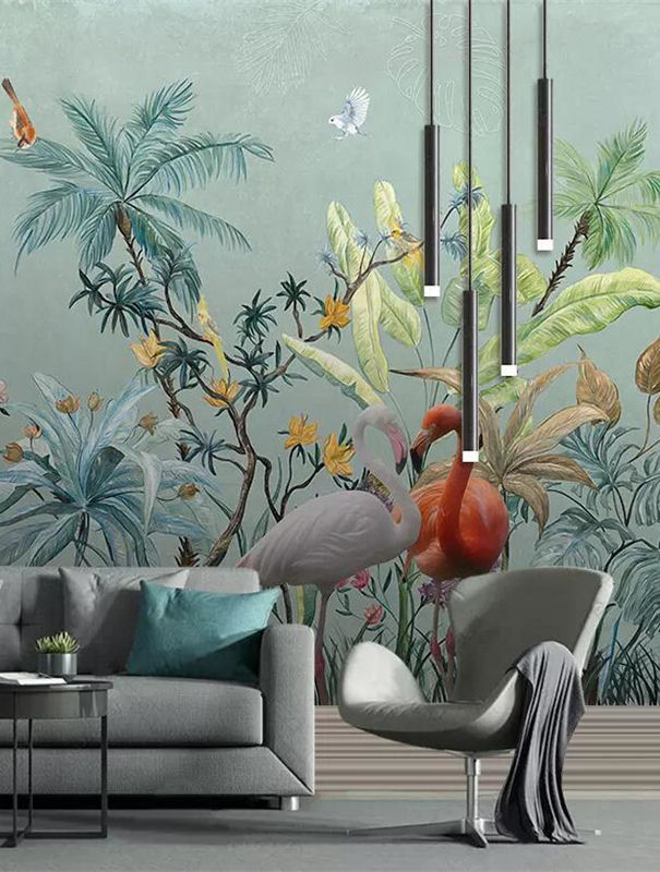 Los elementos tropicales han irrumpido en los diseños de papel pintado para marcar una tendencia creciente que se está afianzando en numerosos trabajos de decoración. Si queremos conferir un aire desenfadado y original a cualquier estancia de nuestro hogar, el estampado tropical es la elección perfecta, sobre todo si queremos una decoración atrevida. Los motivos alegres y «refrescantes» inspirados en la naturaleza salvaje, son ideales para ambientar cualquier habitación, ya que armonizan a la perfección con otros elementos decorativos o muebles.