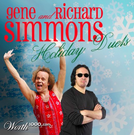 Gene and Richard Simmons – Holiday Duets. Grande portada que hay que saber apreciar. Por un lado el entusiasmo del hombre de rojo, y por otro lado el hombre de negro con gafas y pose de «me la refinfla todo».
