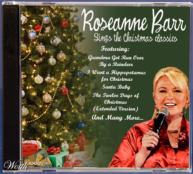 Roseanne Barr – Sings the Christmas classics. Aparte de su cutre-portada, me sorprenden los títulos de algunas canciones: «La abuela fue atropellada por un reno» o «Quiero un hipopótamo para Navidad».