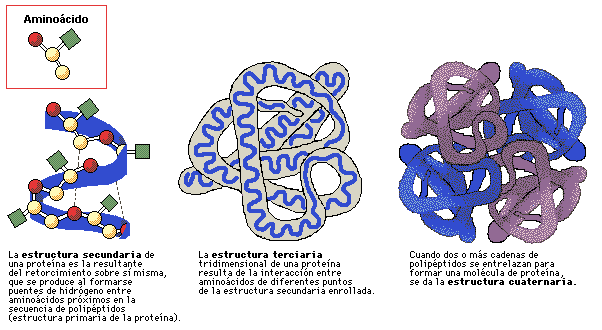 Como resultado de esos enlaces, las proteínas adquieren una “estructura secundaria”. Algunas estructuras comunes: