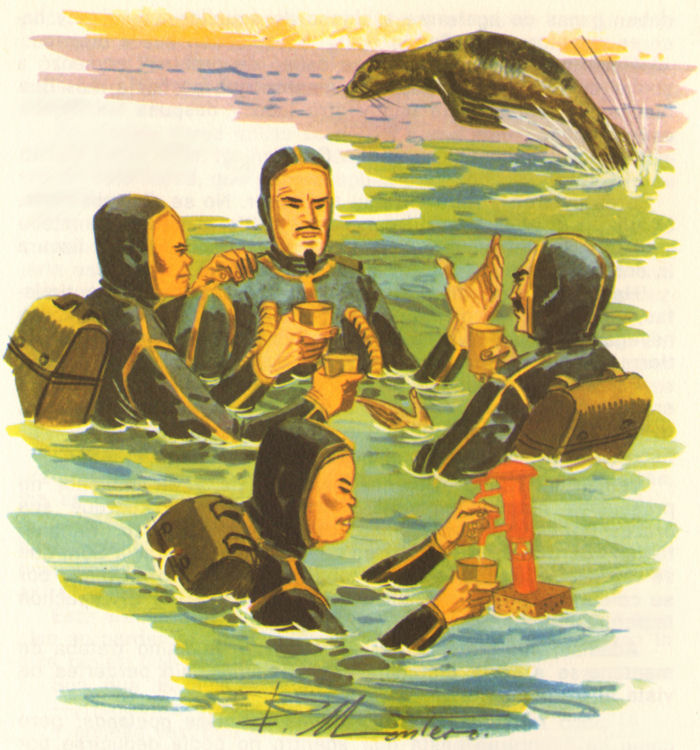 Lo único exagerado que veo en el libro es la tecnología que emplean los personajes cuando están en el mar. Llevan unos trajes de buzo con todas las comodidades posibles: no se hunden, no tienen frío, les sirve para navegar, y lo más extraño, es que portan muchísima comida y hasta logran hacerse un té en medio del mar, gracias a un maravilloso hornillo que funciona aprovechando la llama que se produce cuando el fósforo de calcio entra en contacto con el agua para producir hidrógeno fosforado.
