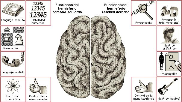 Pero la especialización de los dos hemisferios cerebrales va más allá del simple control físico. En 1861, el cirujano francés Paúl Broca descubrió en el cerebro el área relacionada con el habla, dando la primera prueba de la localización de las funciones cerebrales. En 1874 el neurólogo Carl Wernicke localizó en el hemisferio izquierdo el área que tiene que ver con la comprensión del lenguaje hablado y escrito. Experimentos más complejos realizados posteriormente han demostrado que en el 95% de las personas, aproximadamente, el hemisferio izquierdo no sólo tiene que ver con el lenguaje, sino también con los razonamientos lógicos -las matemáticas por ejemplo—, y que el hemisferio derecho dirige las actividades no verbales en que predominan los aspectos artísticos y emocionales.