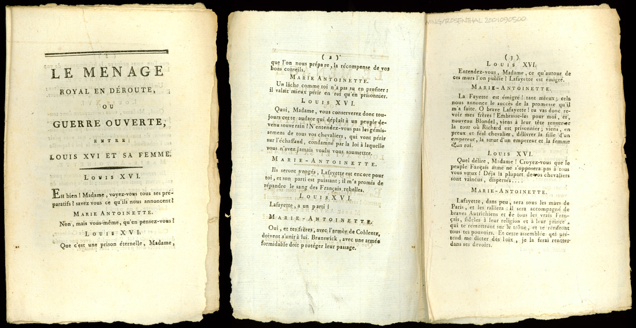 A continuación, innumerables libelistas redactaron manuscritos que, ampliando cualquier chisme, pretendían exhibir los excesos de Maria Antonieta e hicieron saber al teniente general de la policía, Lenoir, que renunciarían a la edición a cambio de una generosa suma. Esta forma de especulación dio resultados al librero Bossière, que publicó en Londres «Los amores de Charlot y Toinette» (1779), un libelo que de forma sarcástica, hablaba sobre la impotencia de Luis XVI, y contaba cómo Maria Antonieta se acostaba con su cuñado, el conde de Artois.