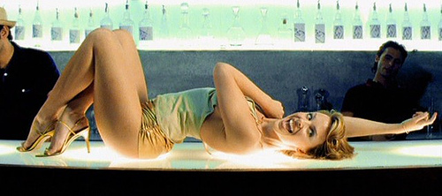 Una buena idea sobre lo que se considera erótico: tacones altos, primeros planos de culazo embutido en unos cortos “golden hot-pants” y una camiseta holgada para que imaginemos el tintineo de los pechos. A mi personalmente me encanta el primer plano del trasero de Kylie al principio, las escenas donde se retuerce en la superficie de luces o el baile encima de la barra de bebidas. También es bastante sugerente el ambiente de la pista de baile, con mucha gente tocándose y refriegues de cebolleta por doquier. Pero claro, mis argumentos no son bastante imparciales siendo como soy, fan de la “kili”. Por cierto, con este single, Kylie volvió a la carga después de el bajón que sufrió a lo largo de los 90 en cuanto a fama.