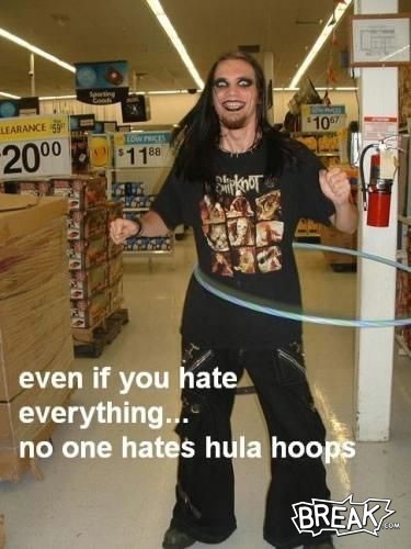 Aunque odies todo, no hay nadie que odie los hula hoops. Otro emo loco al que no te gustaría encontrar en un callejón oscuro.