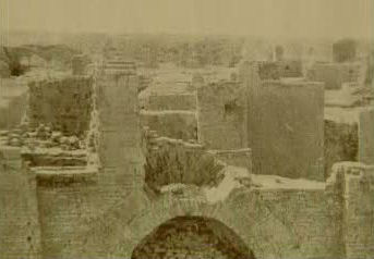 Esta es la fotografía del edificio abovedado de Koldewey, justo al norte de las murallas. La propuesta actual para los Jardines Colgantes está justo en el horizonte, junto al rio Eúfrates.