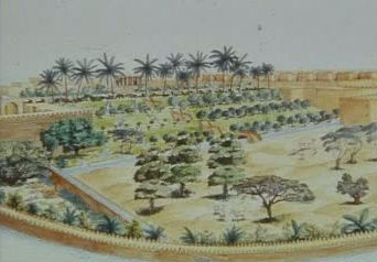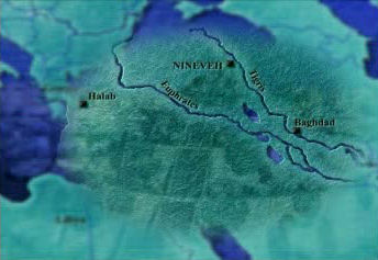 Hay una serie de cosas que suenan de modo muy parecido a lo que recogieron las fuentes clásicas. Hay un pequeño rio, el Khosr, que discurre por el emplazamiento de Nínive, y una de las cosas que hizo el rey, fue delinear las orillas del rio con piedra, lo cual aparece en algunas de las fuentes clásicas. Luego levantó una enorme terraza sobre el emplazamiento de un palacio anterior, y construyó el suyo sobre ella, incluyendo a su derecha una especie de parque que se descolgaría sobre el borde del rio.