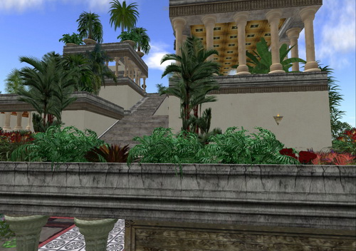 Los relatos acerca de los Jardines Colgantes difieren bastante unos de otros. Una cosa en la que parecen estar bastante de acuerdo, es en que había unas terrazas ascendentes con jardines. Parece que se trataba de una serie ascendente de galerías con los jardines plantados encima, y una de las fuentes habla de cómo entraba la luz en esas galerías, de modo que en sí mismas constituirían casi una estructura de pabellón.