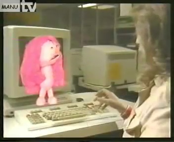 En este fragmento de vídeo podemos ver el comienzo del primer programa, en el que Isabel Gemio llega al trabajo de oficinista y conoce a Mim como a quien se le aparece la virgen. Eran otros tiempos, en los que las mascotas irreales se fusionaban con presentadoras de carne y hueso, como Verónica Mengod y Pepe Soplillo en El Kiosko o Maria Abradelo se lo curraba en el Babalá Club hablando en un croma con varias mascotas de ciencia ficción que no existían (qué gran maestra la Abradelo).