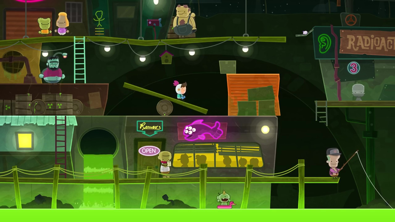 A mi personalmente me ha encantado la atmósfera que han dotado al juego, que es todo un homenaje a los mundos alienígenas y descerebrados que pueblan el universo sci-fi. Los entornos son coloridos y futuristas, llenos de neón, autómatas y demás seres que se nos antojarán disparatados y tiernos a la vez. Ya sólo por eso merece la pena jugar a este título, que nos enganchará desde la primera pantalla gracias a los sucesivos retos y su asequible curva de aprendizaje.