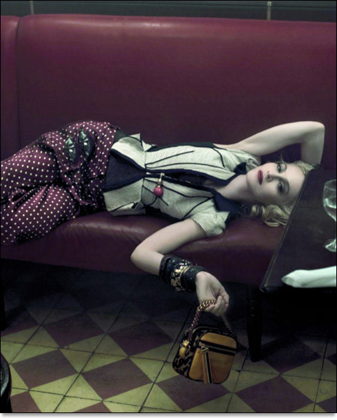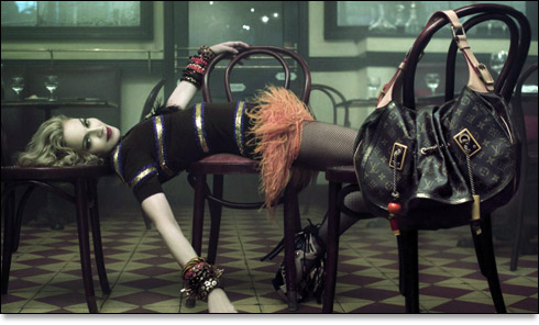 ¿El concepto? Madonna ha sido fotografiada en un nostálgico, bistro parisino, el único problema es que está en Los Angeles, aunque realmente te hace pensar que estás es Francia. Ese día había cientos de paparazzis fuera. Madonna llevaba prêt-à-porter de Marc Jacobs para Louis Vuitton, al estilo de Marie-Amélie Sauvé, y por supuesto se dio la debida importancia a los bolsos y zapatos, los accesorios que han sido durante mucho tiempo las mayores fuentes de ingresos de la marca.