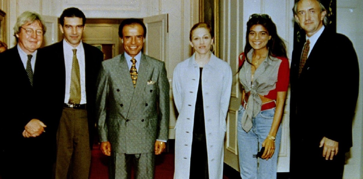 Madonna en otra reunión con Carlos Menem, esta vez acompañada de Antonio Banderas y Alan Parker.