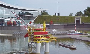 La Plataforma de producción de la N.A.M., en Groningen, puede producir a la vez petróleo y gas. El petróleo va a través de una de las tres patas de hormigón, a las células de almacenamiento en el fondo del mar. El gas natural va directamente a tierra a través de conductos. La parte sobre las patas de acero, alberga las habitaciones de la tripulación y una plataforma para helicópteros.