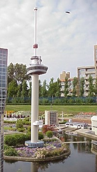 En la maqueta de la ciudad de Rotterdam, considerada uno de los puertos más importantes del mundo, nos encontramos con el Euromast, una torre de atracciones de 185 metros de alto, con un veloz ascensor que puede llegar a los 100 metros de altura, y con una cabina espacial puede ascender hasta casi los 200 metros.