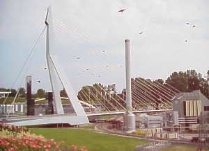 El Erasmusbrug (Puente Erasmo) es una llamativa obra de arte y desde aquí se ve el enorme puerto en donde grandes transatlánticos atracan.