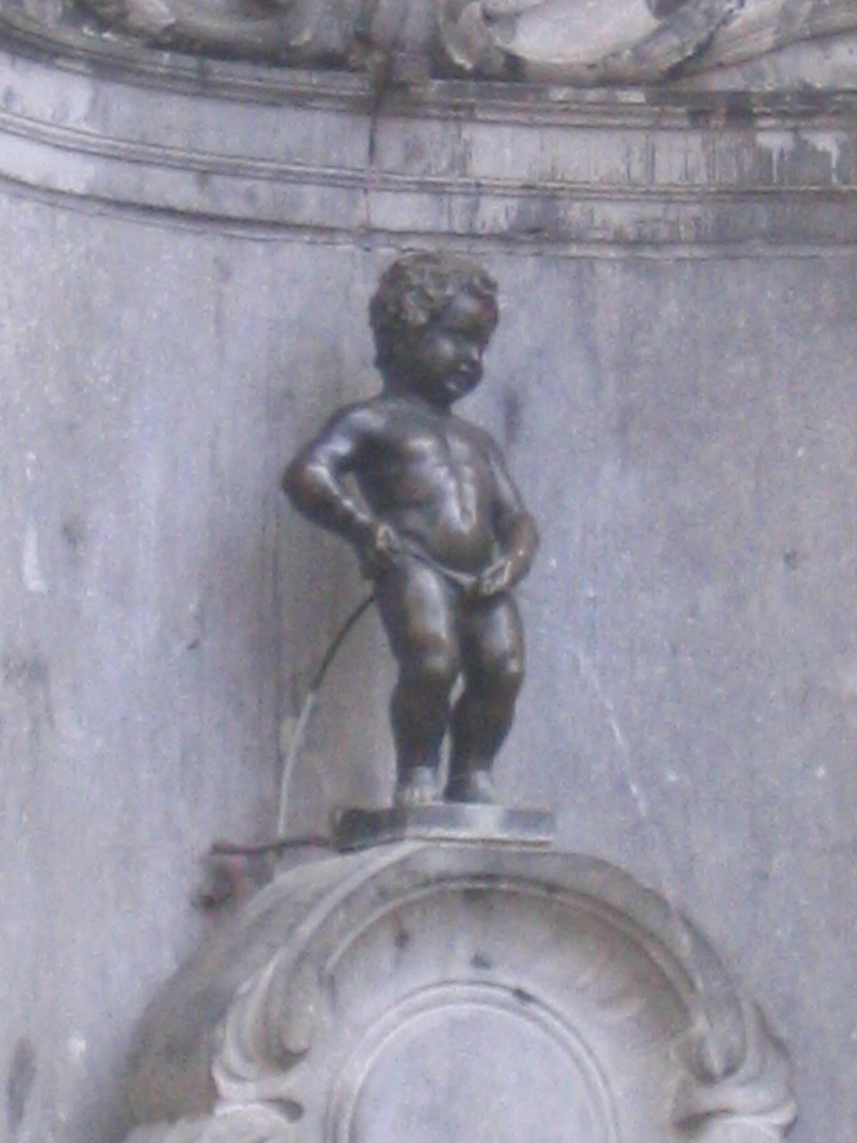 Hay varias leyendas tras esta estatua, pero la más famosa es la del duque Godofredo II de Brabante. En 1142, las tropas de este señor de dos años de edad batallaban contra las de los Berthout, señores de Grimbergen, en Ransbeke (actual Neder-over-Heembeek). Las tropas pusieron al infante señor en una cesta y la colgaron de un árbol, para animarse. Desde allí, éste orinaba sobre las tropas de los Berthout, que terminaron perdiendo la batalla.