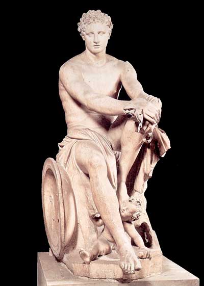 Marte, llamado Ares por los griegos, era el dios de la guerra. En Olimpia se le adoraba bajo el nombre de Ares-Hippios y en Esparta como Ares-Enyalius (el belicoso).