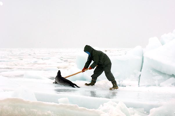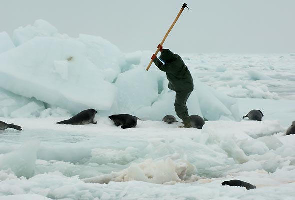 La solucion está a la vuelta de la esquina. Con el cambio climático el hielo de los polos desaparecerá y las focas se extinguirán… de esta forma ya no las podran cazar.