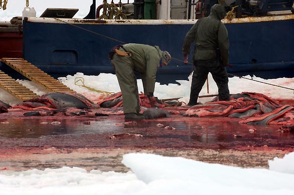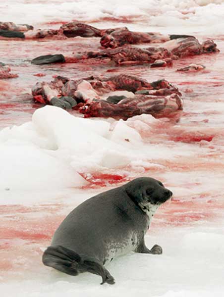 Mira me ha inpactado mucho esa foto que mataban a mas de 100 focas ,eso veras como no lo hacian si se mataran ellos son seres vivos que tambien se merecen vivir, todos los que matan a esta especie son unos asesinos