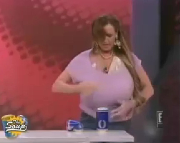 Pues era cierto, los pechos se pueden utilizar para agredir a alguien, o como en el caso del vídeo, aplastar cosas. Una mujer de enormes pechos destroza unas latas de refresco sólo con sus enormes delanteras. No me gustaría encontrármela en un callejón oscuro XD.
