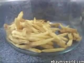 Este otro vídeo resulta más sorprendente, ya que analizan el paso del tiempo sobre una hamburguesa y unas patatas de McDonald’s depositadas sobre un plato a la intemperie. Pasados 180 días, la comida está prácticamente igual que el primer día, como si se hubiese quedado petrificada. Aun así me resulta un poco extraño que las hamburguesas del primer experimento sí se pudriesen, pero en este otro vídeo hasta el pan permaneciese inmutable. No sé si incluso podría ser un fake para desprestigiar a McDonald’s. Lo que está claro, es que las patatas son a prueba de bombas.