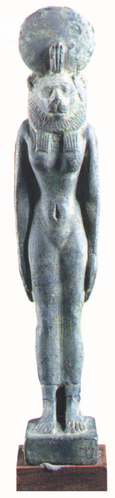 Figura de bronce que representa a la diosa Sejmet, temible leona considerada la responsable de las epidemias, pero también de la curación. De combatirlas estaban encargados sus sacerdotes, que eran también veterinarios (época tardía).
