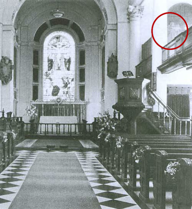 Esta fotografía fue tomada en 1940 frente al altar de la iglesia de San Nicolás en Arundel, Inglaterra. En ella vemos la imagen etérea de una figura que se encuentra de espaldas. Se cree que muestra a un religioso con abalorios litúrgicos que está rezando. Otros sin embargo, dicen ver a una mujer de espaldas con dos coletas que viste una falda y también está rezando. En el momento de hacerse la foto, no había nadie en la iglesia, como suele ser frecuente en estos casos.