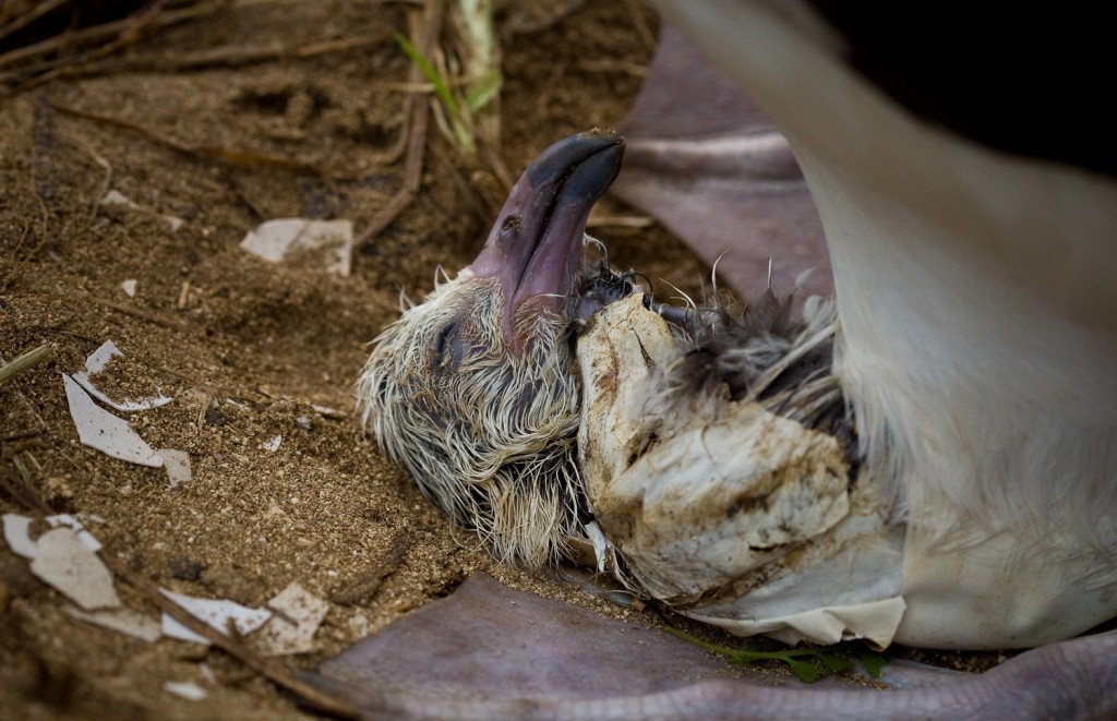 Del millón y medio de albatros de Laysan que habitan la isla de Midway, en todos ellos se encontró plástico en sus aparatos digestivos, lo que provoca que una tercera parte de sus crías fallezcan.